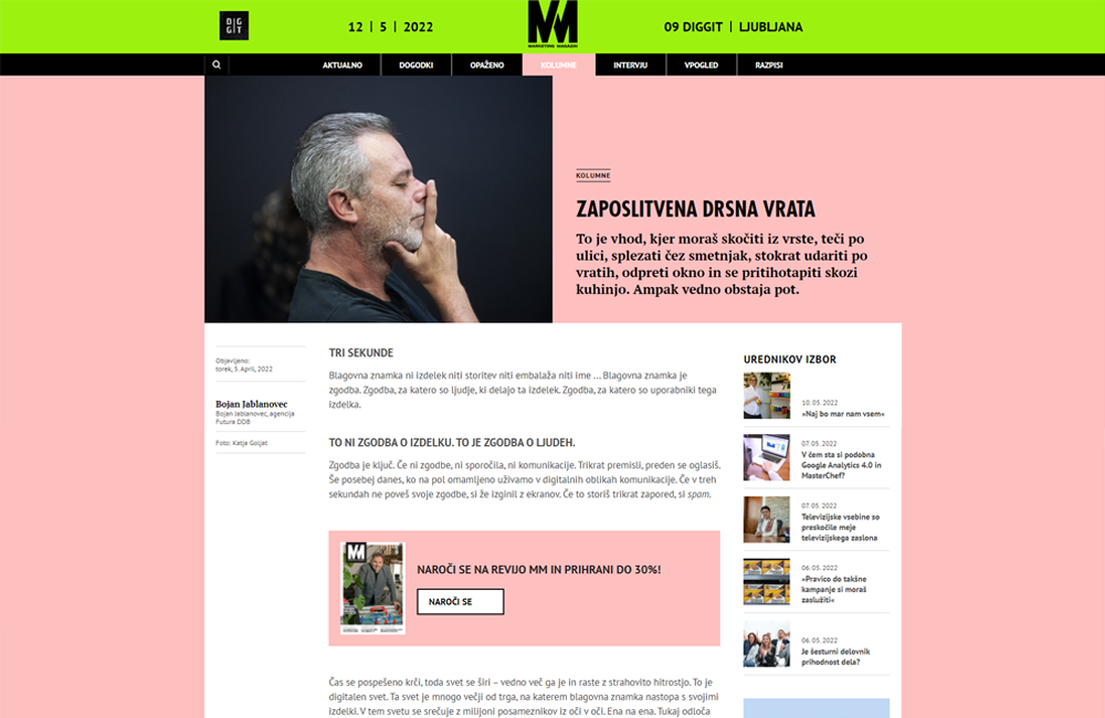 Skrbimo za vašo blagovno znamko in bedimo nad objavo in odmevom vaših idej, zamisli, novosti in včasih norosti. Premišljene besede spletemo v kreativno celoto, odpiramo nove priložnosti in smiselno podpiramo vaša prizadevanja k rasti ter prepoznavnosti podjetja. Ker je pozornost kupca dragocena, vaše dosežke, ideje in vsebine predstavimo na pravem mestu in v pravem času.